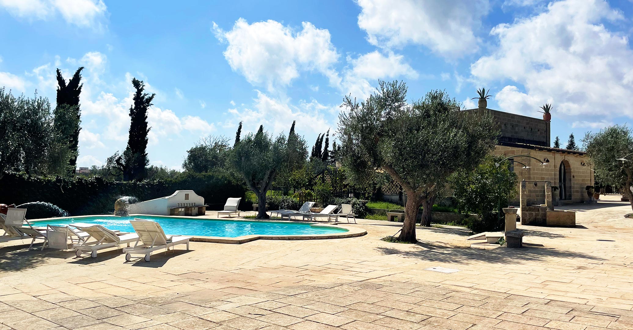 Grande e spaziosa piscina incastonata tra gli ulivi, costruita utilizzando l’antico sistema del “Coccio Pesto”, farà da scenario alla vostra vacanza.